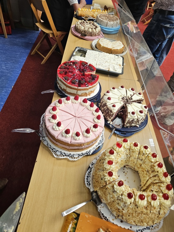Egal ob Torte zum Mitnehmen oder Kuchenstück zum Sofortverzehr – alle Gäste kamen auf ihre Kosten. Gegen Nachmittag leerte sich die Halle langsam, erfüllt von zufriedenen Gesichtern und fröhlichem Stimmengewirr.