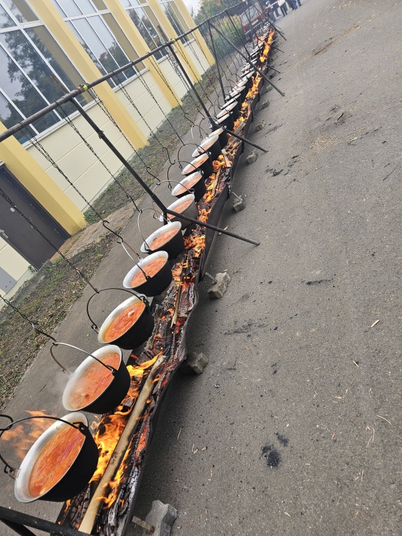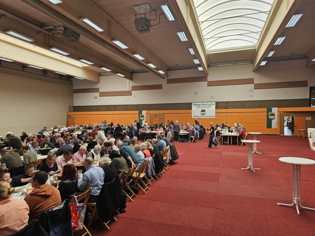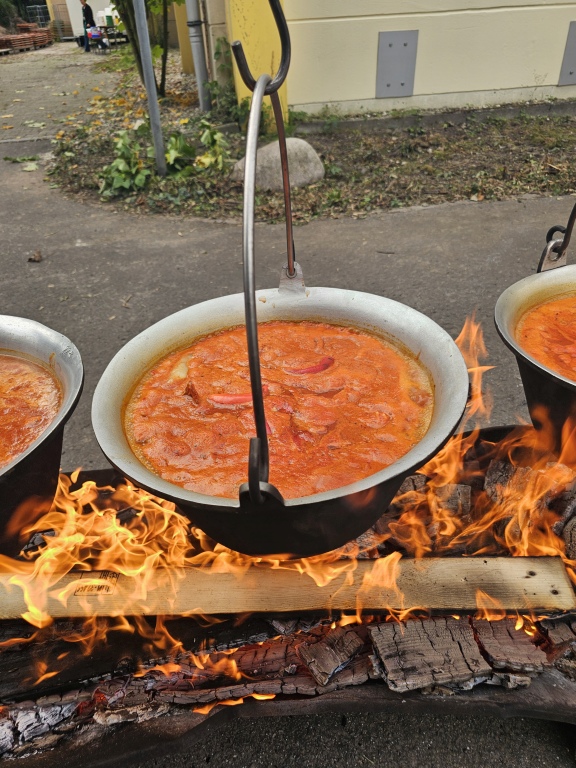 Am 12. Oktober verwandelten rund 30 Helferinnen und Helfer der Donaudeutschen aus Haßloch das Gelände rund um die TSG-Halle in eine duftende Open-Air-Küche. In 40 Kesseln schmorten auf offenem Feuer Hähnchenpaprikasch für über 300 hungrige Gäste – und das mit großem Erfolg.